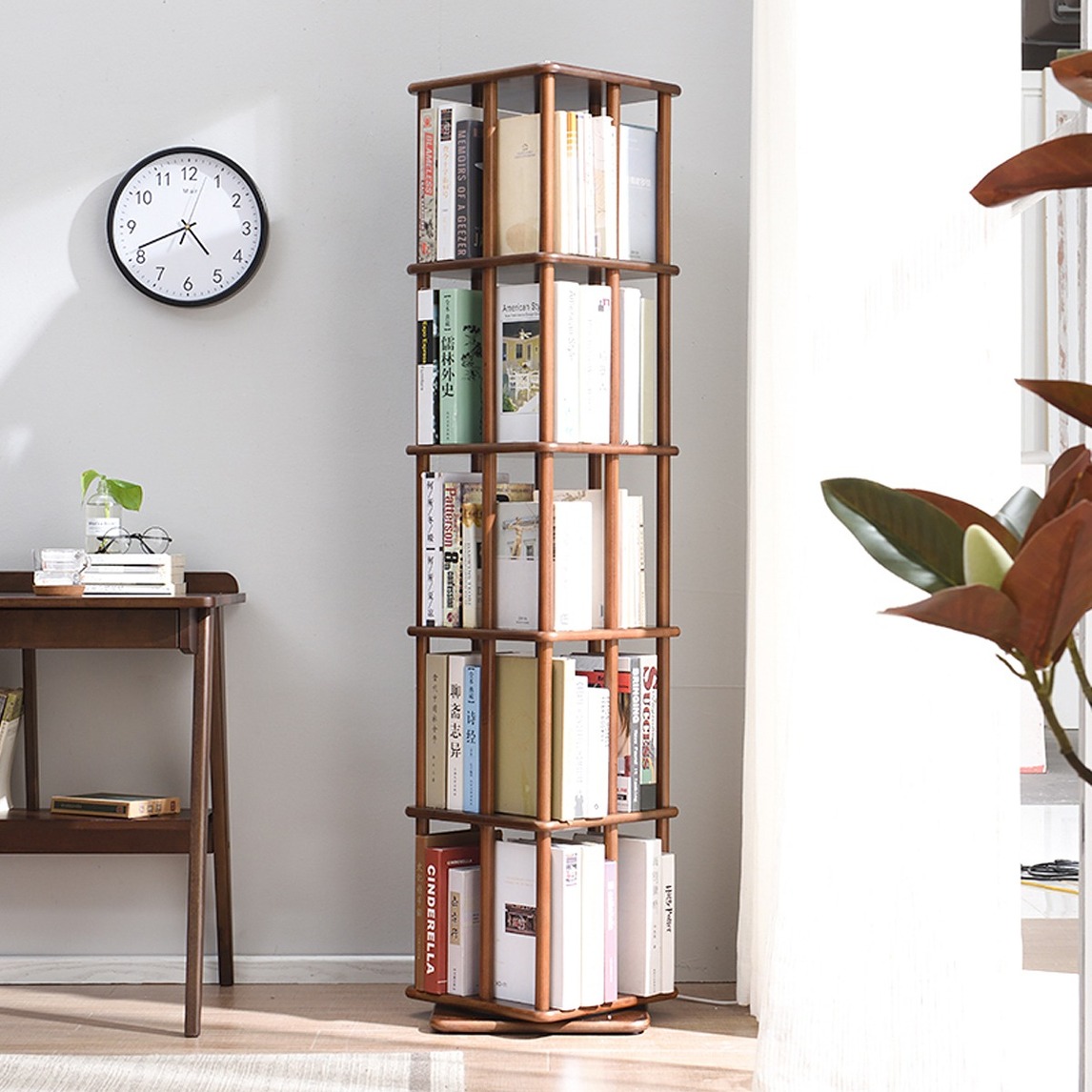 设计很人性化的一款书架,多层设计收纳功能强大,融入旋转元素,取自己想要的书籍更为方便,也让空间氛围更具书香雅韵。