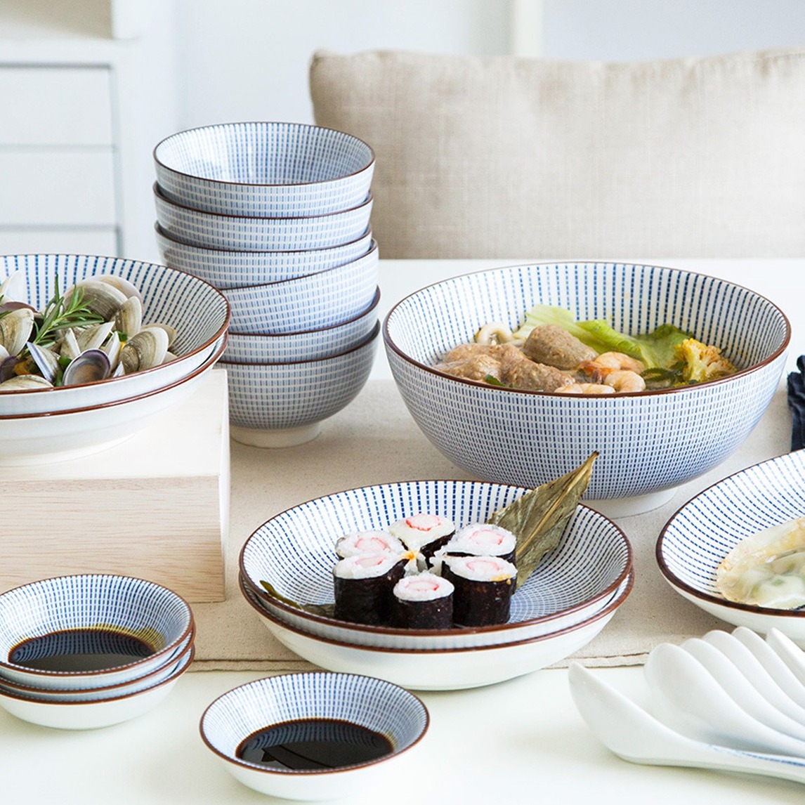 日式餐具以釉下手绘,釉上彩绘,贴花纸,喷色釉,描金等多种工艺表现产品,风格华丽多彩,中国明清时代影响印记强烈。