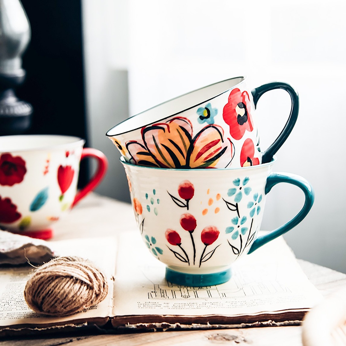 创意陶瓷手绘马克杯,采用高质色釉,釉下彩工艺,新式格调,轻奢简约设计,满足餐桌上的更多搭配,精美绝伦。