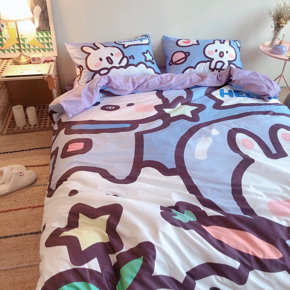 日系卡通的精致插画,萌兔图案形象又可爱~ 印花色彩亮丽,生动极了~ 40s精梳全棉的面料手感也更光滑舒适,摸下去会有细腻的触感,光凭细节就能打动你啦!