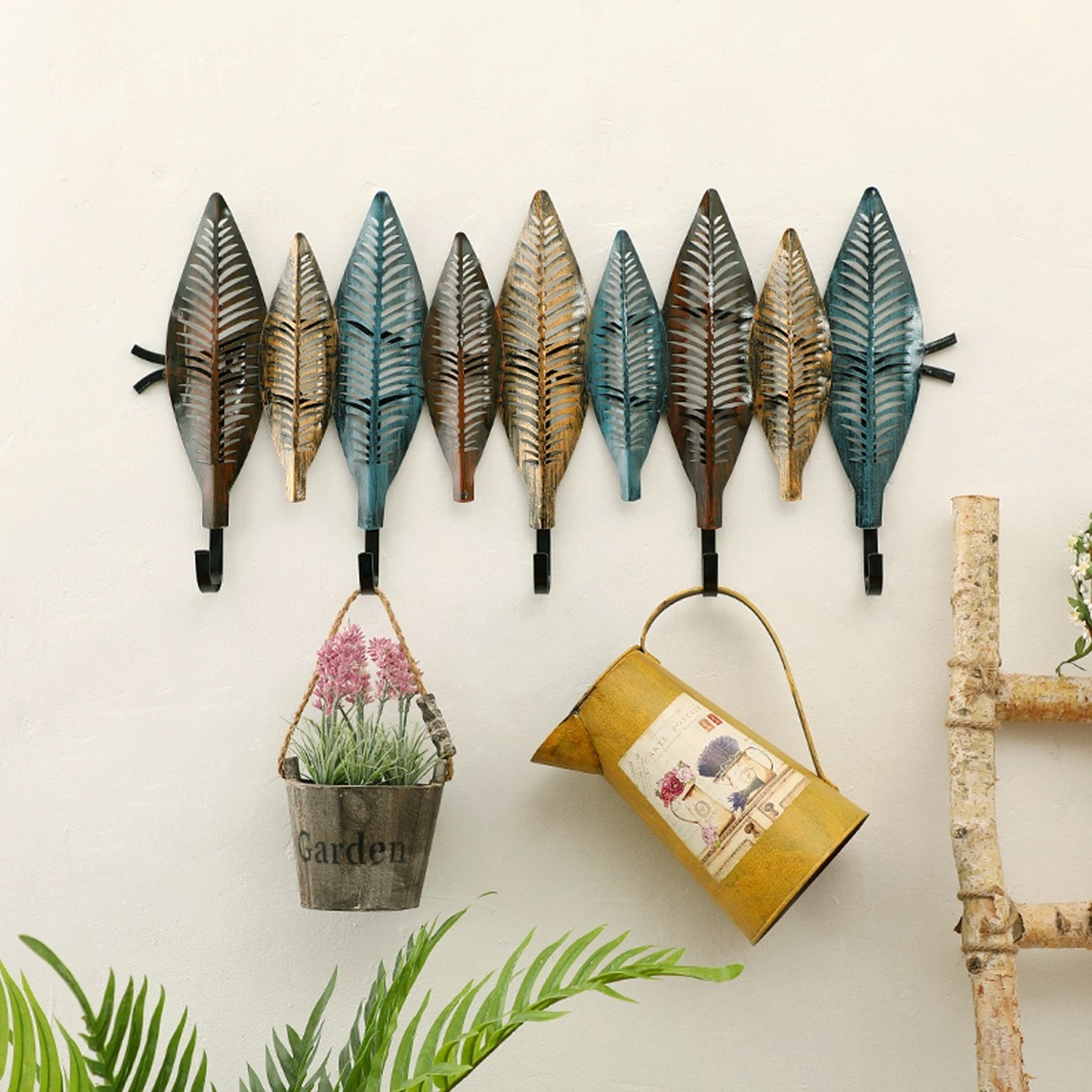 简单的原木衣帽架和可爱的鱼骨图案的衣帽架,营造满满日式风的气息,在这样的基础上,用可爱的假花装饰和做旧质感的花瓶来装饰,有点复古风的质感让日式风更加清新可爱。
