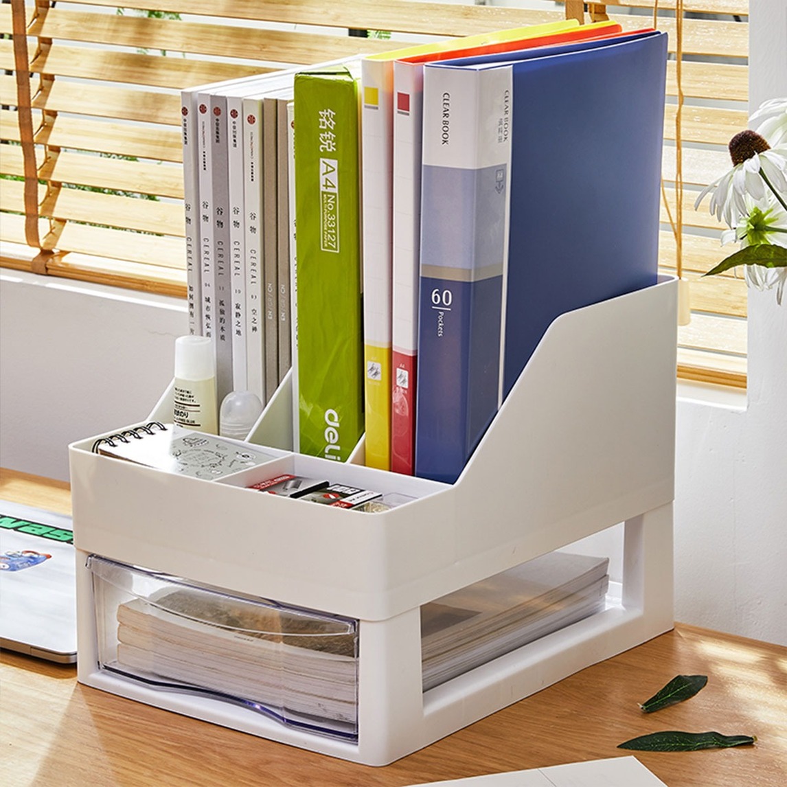 支持大号文件夹书籍放置,底层抽屉设计,分类整齐,纸质文件不怕丢失,收纳文件的同时也可以分类收纳各种小物件,让桌面更整洁。