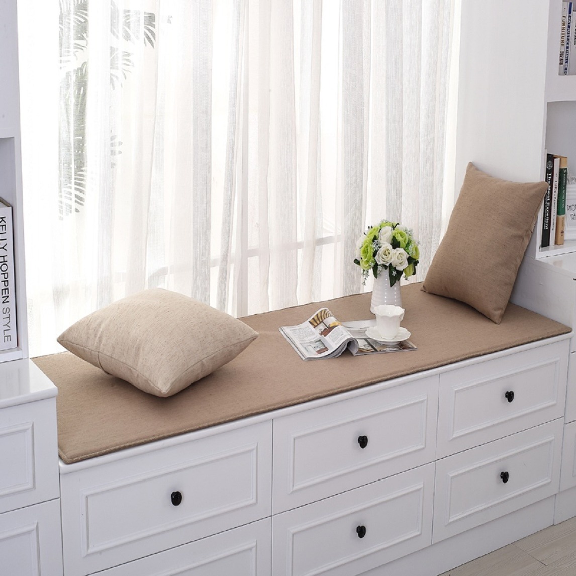 飘窗空间该怎么装扮,很简单,只需要铺上一张简约风格的飘窗垫就足够了,搭配上简约的抱枕,闲时可以看书喝茶,感受惬意生活。