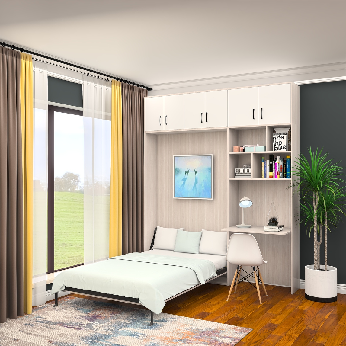 小小的角落隔出一间房,隐形床和书桌的组合成功的将卧室和书房融为一体,实现了小户型也有多房间的理想愿望。