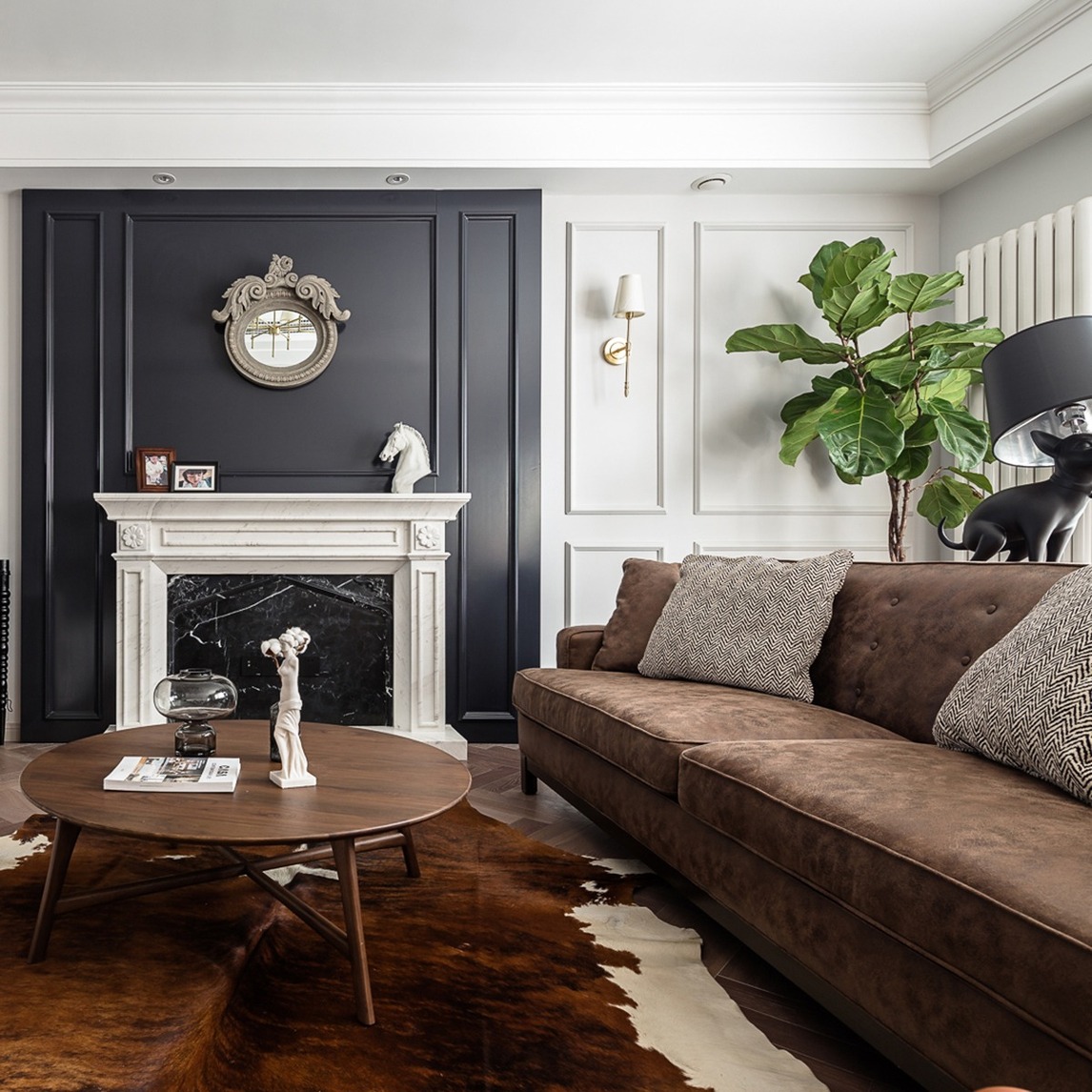 复古不失优雅的棕色调,经典的拉扣工艺,寄寓它的是所有关于复古美式的幻想。深棕色的大件家具,奠定了客厅的整理格调,黑白拼色的电视背景墙搭配流畅线条,这样的客厅让人一秒爱上。