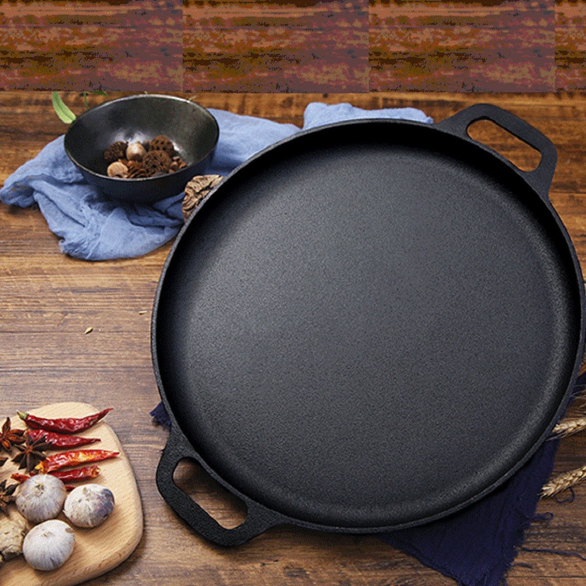 这款铸铁平底锅,无任何喷涂化学涂层,原生铁矿,锅面颗粒让食物呈半架空状态加热,食物不粘锅,犹如在生铁上烹饪一般。一体成型把手设计,质感厚重,握感舒适,而且加大了使用的安全性和使用寿命。