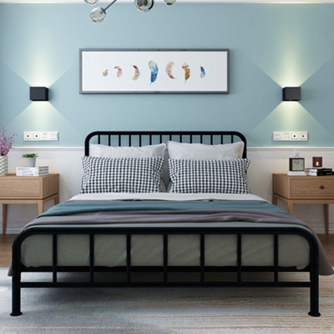 蓝色美式卧室,营造安静宁静环境