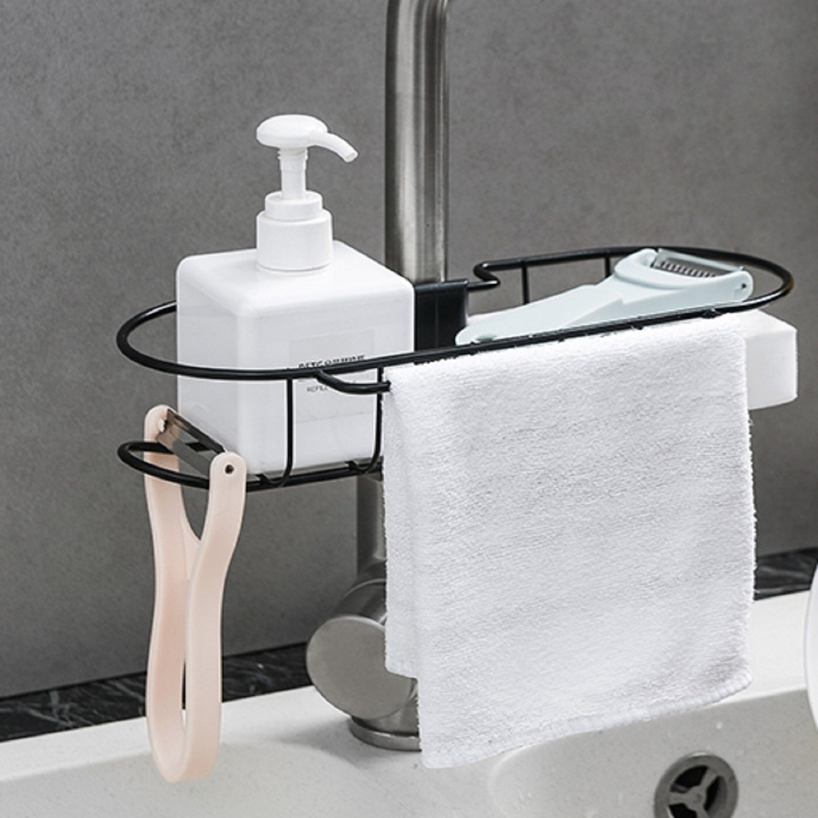 这款水龙头置物架采用螺纹帽拧紧固定,可以根据水管粗细调节,安装方便,加厚铁艺,承重力强,铁艺喷漆不易生锈,置于厨房水龙头上,收纳沥水一部搞定。
