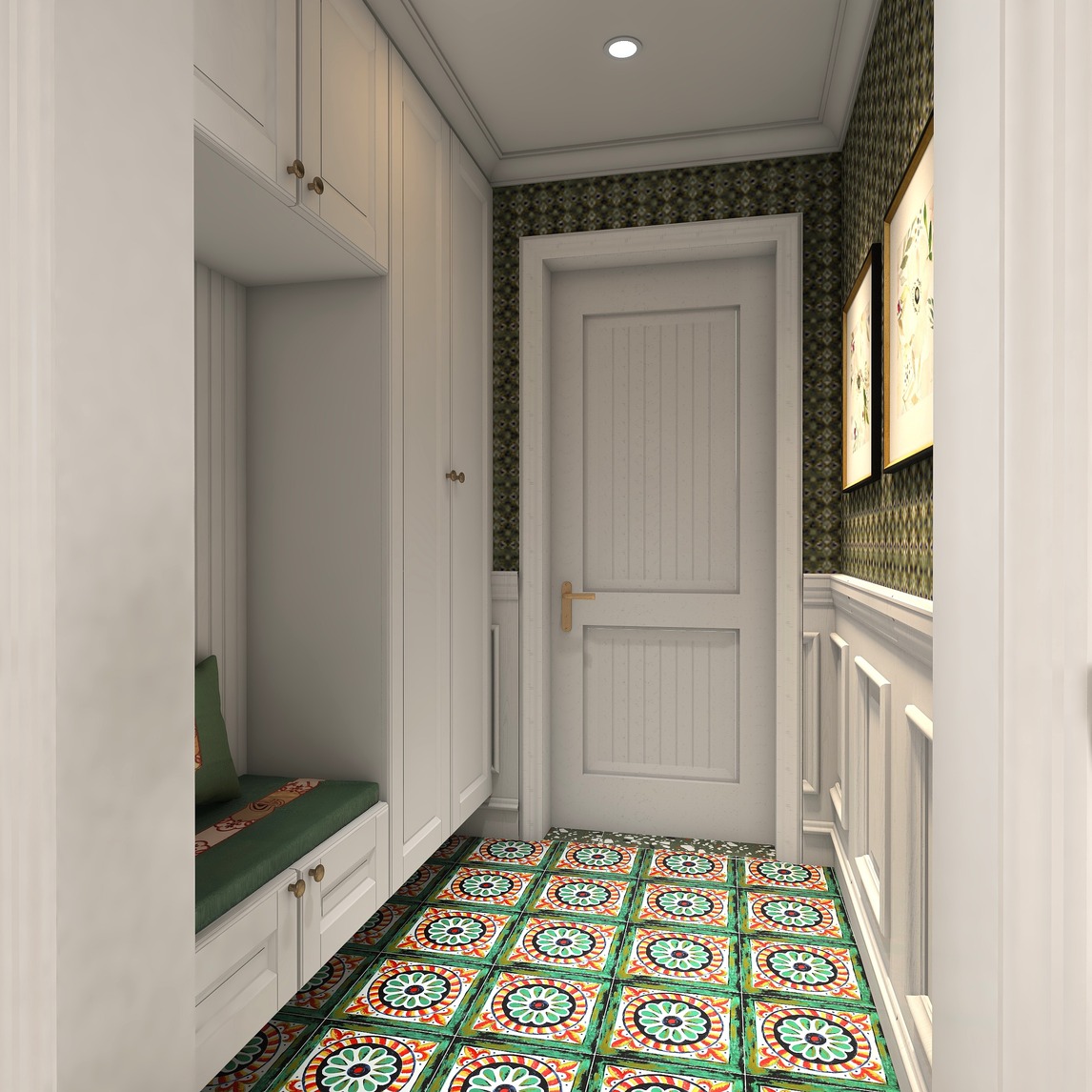 美式纯正天然的独特风格设计,令人遐想空间的自然与清新,绿色的使用更是让进门空间焕发独特的个性化空间性格。