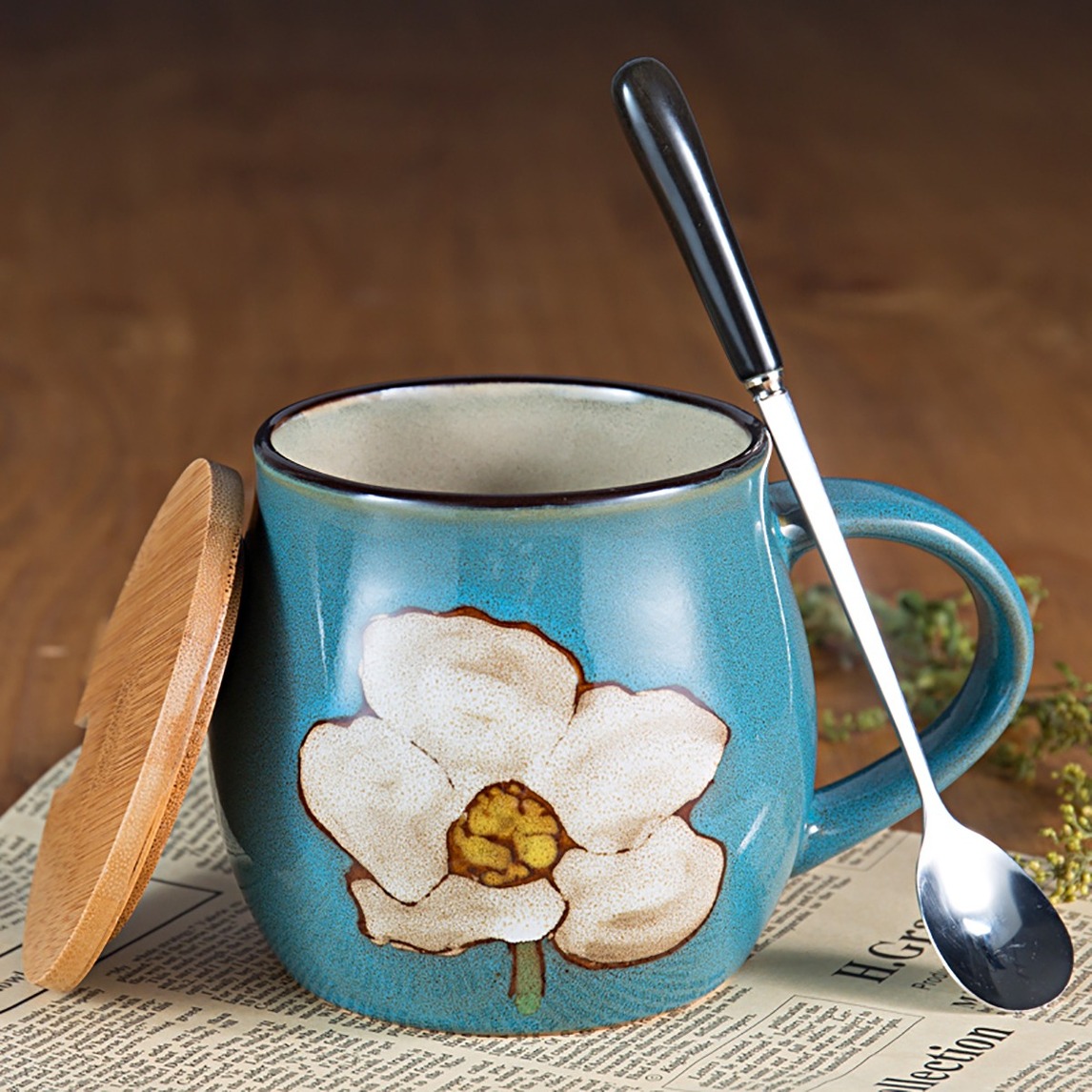 一款很复古的杯子,手工反应釉,花纹比较复古,但是看着精致,白色的花朵跟蓝色的底色融合,蓝白组合别有艺术感。
