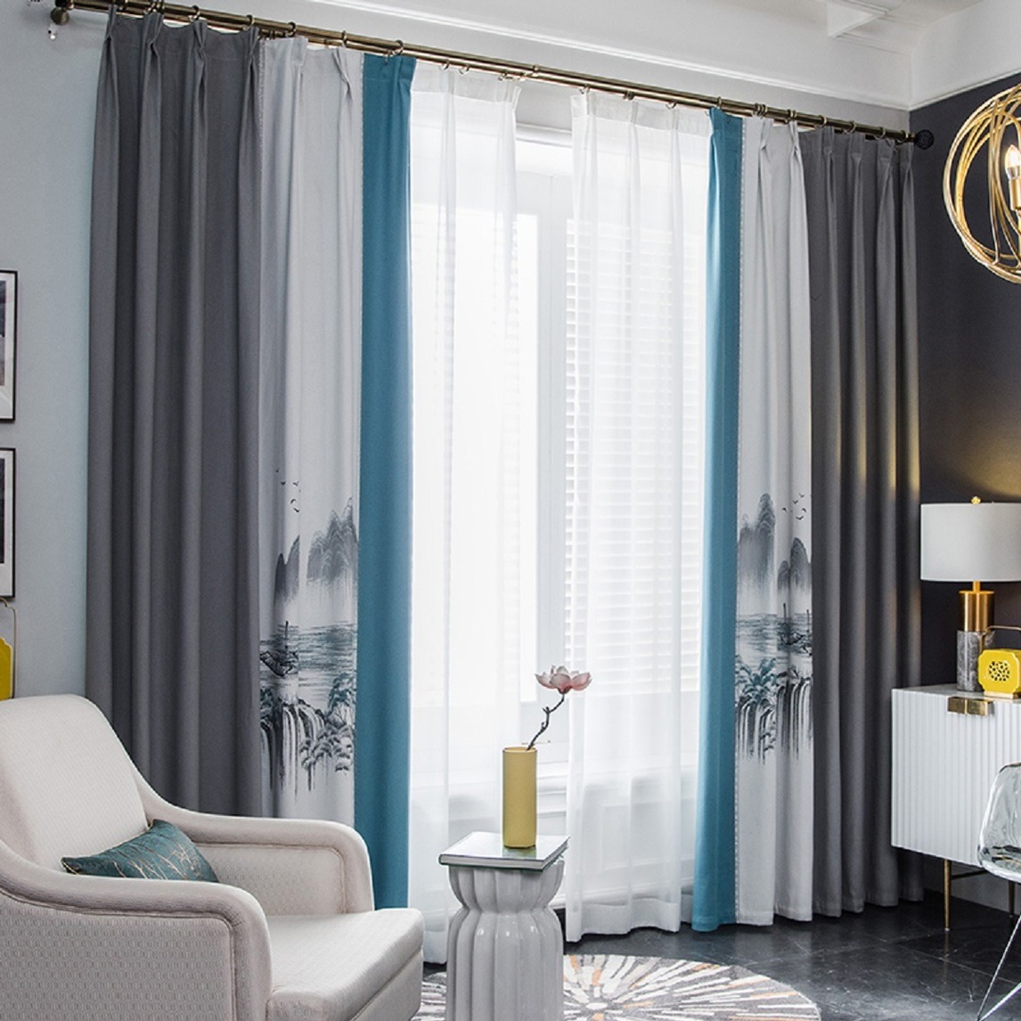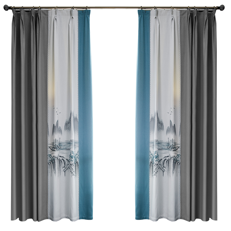 图案是苍翠的群山重重叠叠,在高山和森林的怀抱中出现一泻千里的瀑布,雄伟壮丽,栩栩如生。无缝拼接技术立体提花工艺,描绘出雅致的东方美。