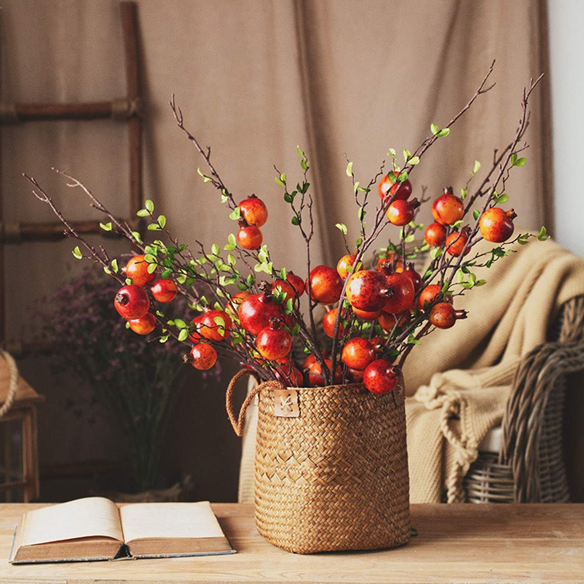 看多了插花,家中换上这样的小石榴显得格外特别。仿真的小石榴树枝,不凑近仔细看几乎分辨不出真假,这个仿真太厉害了。