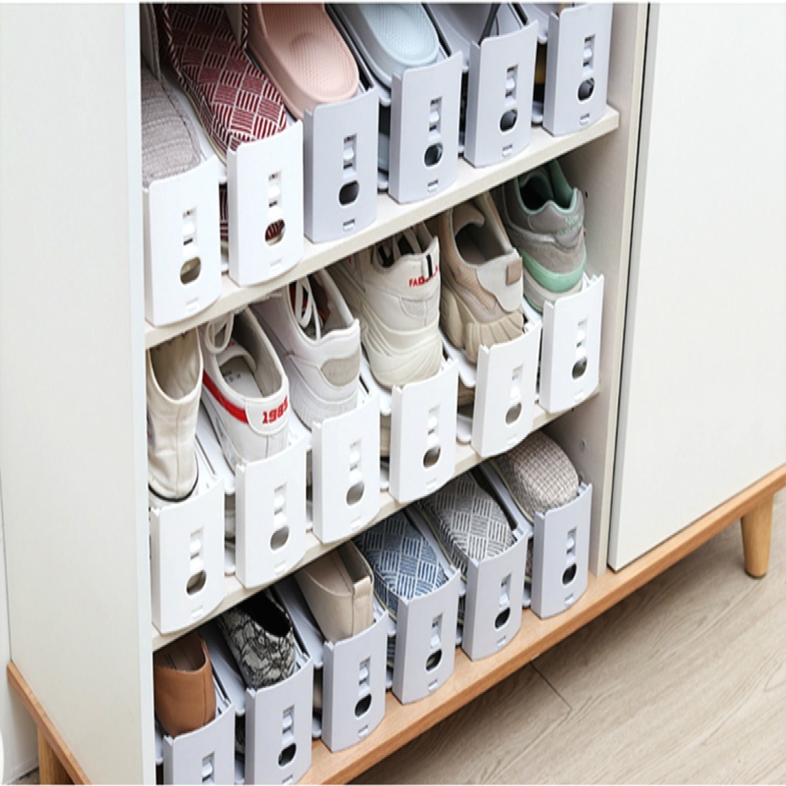 日本进口鞋子收纳架,3档选择,适合多种类型的鞋子,挡板设计,防止鞋子滑落,上下分开放置,节省鞋柜空间。