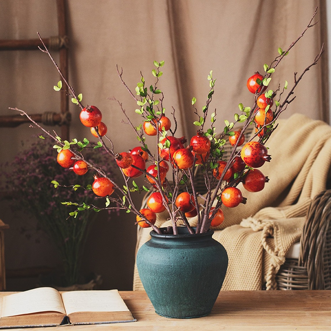 看多了插花,家中换上这样的小石榴显得格外特别。仿真的小石榴树枝,不凑近仔细看几乎分辨不出真假,这个仿真太厉害了。