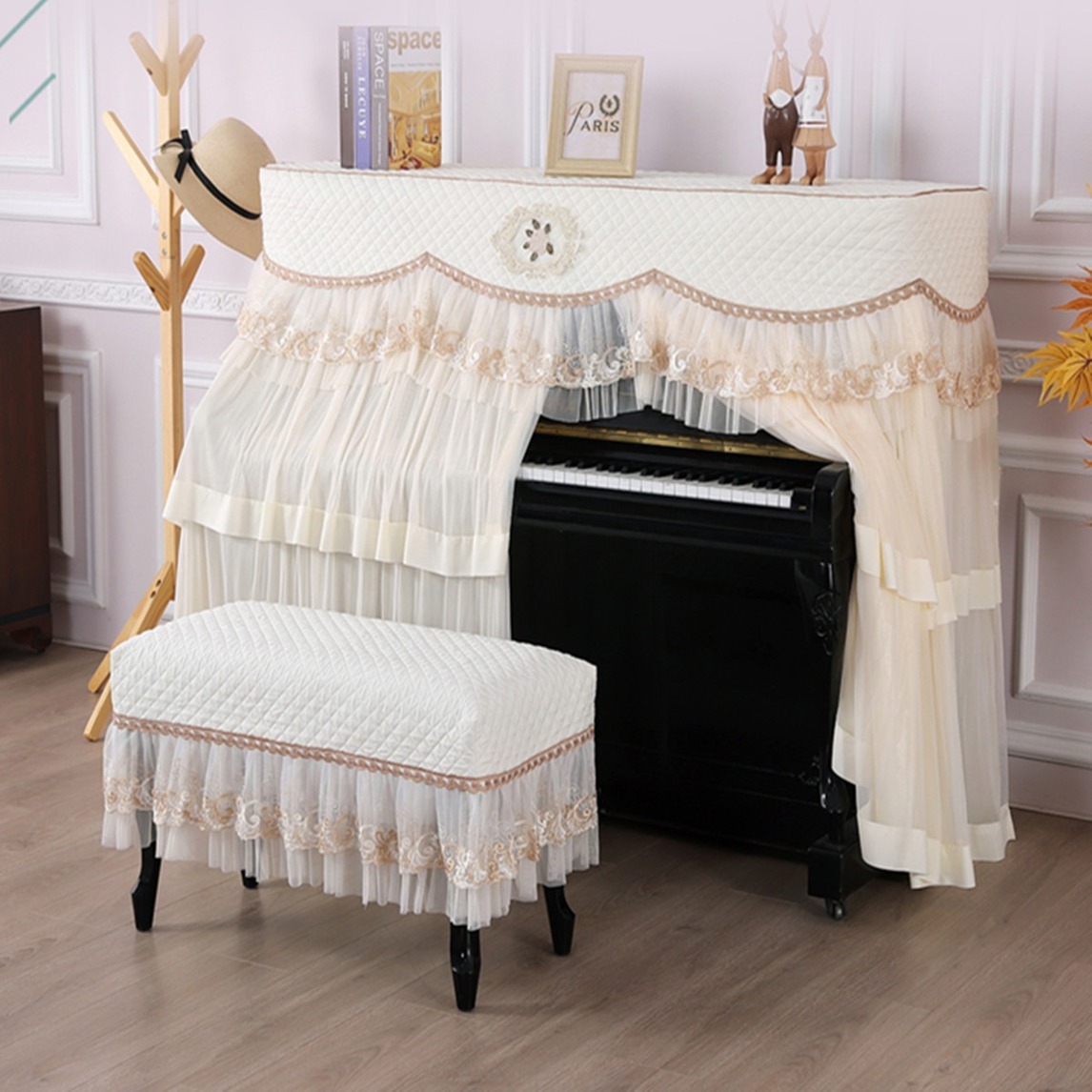 欧式钢琴全罩,典雅大气唯美,定位时尚。4面加衬双层中间打开,全部分帘式中间打开,方便实用,顶部一层刺绣一层夹棉,防尘更佳。