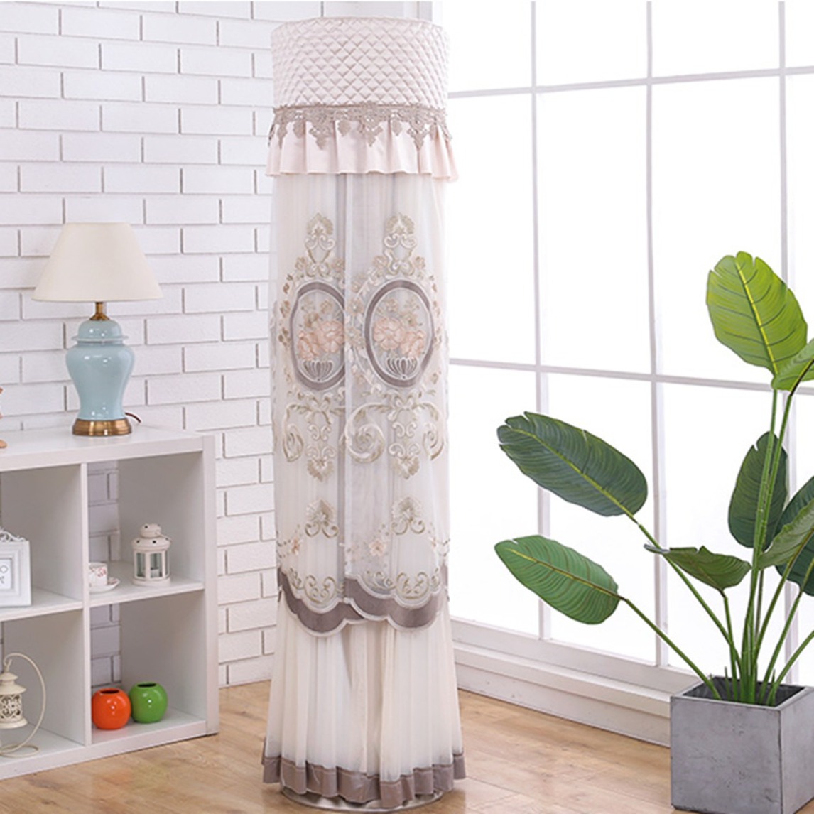 圆形空调罩,开机不用取下,方便使用;精美的电脑绣花,时尚大气,体现出优雅质感;顶部加厚绗缝面料,有效防尘。
