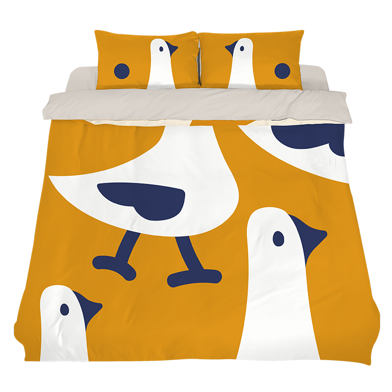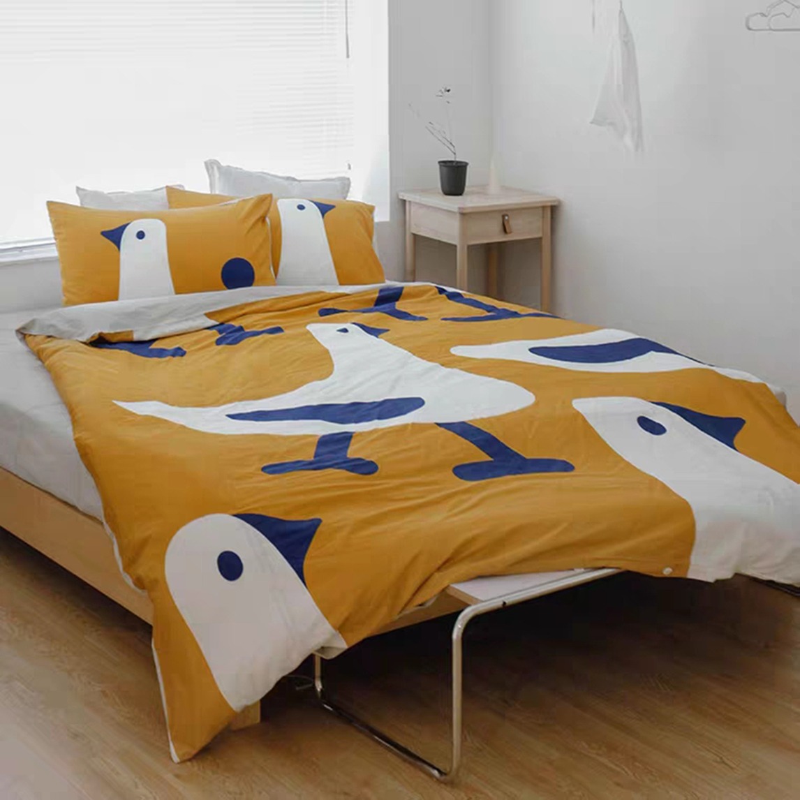 这款简约风,涂鸦是不是唤醒了你内心的童年,简简单单的白鸽,做到了真正的简约,与黄色四件套融为一体!!!
