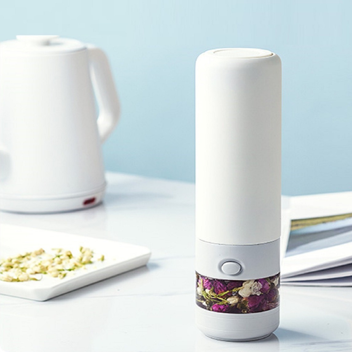 这款泡茶保温杯按钮开关设计,轻轻一按,热水进入茶仓中,再按,茶水过滤到保温杯中,茶水不回流,茶叶不沾口哦,让你喝到纯正茶味。