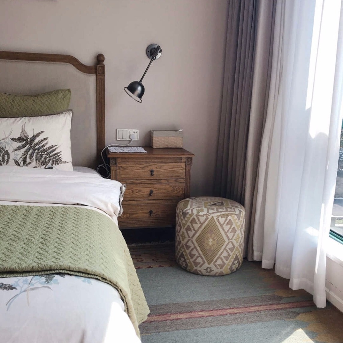 进入居室第一眼看到这款美式长荣床,营造出极简时尚气息。旁边再搭一款实木床头柜,让居室看上去更加有立体感。下面再摆放一款创意布艺圆墩凳,简约时尚的造型设计,展现出清新时尚的北欧气息。再搭配一款白纱窗帘,...展开