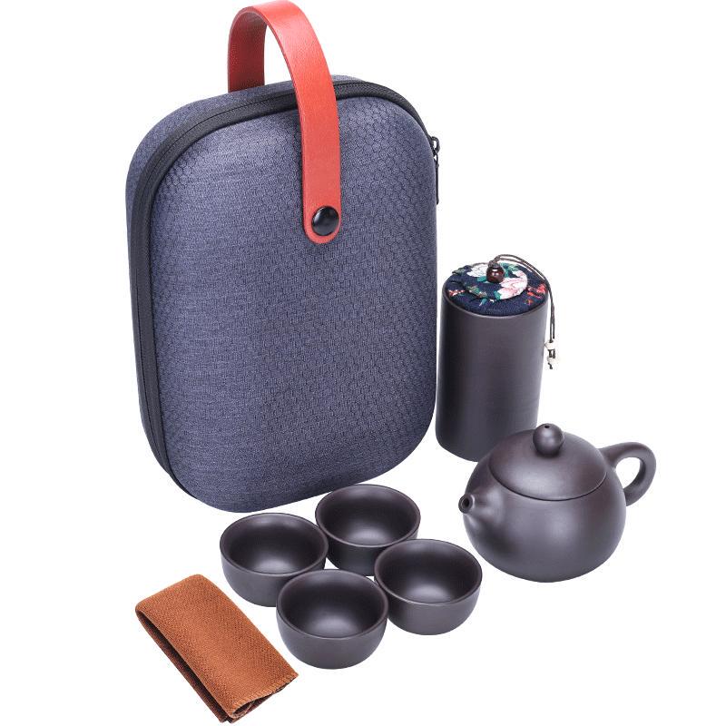 西子一壶四杯系列:一壶四杯、一茶叶罐、一茶巾、一旅行包,携带方便。有了它,随时随地,好茶水想喝就喝,很不错哦!