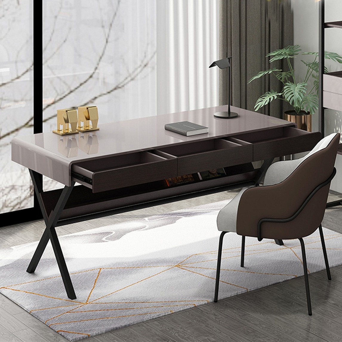 家里如果没有书房便会觉得少点什么,同样的如果没有家用办公桌也许会感到不方便,这款极简现代的多功能办公桌,大小合适,适合多种格局使用。
