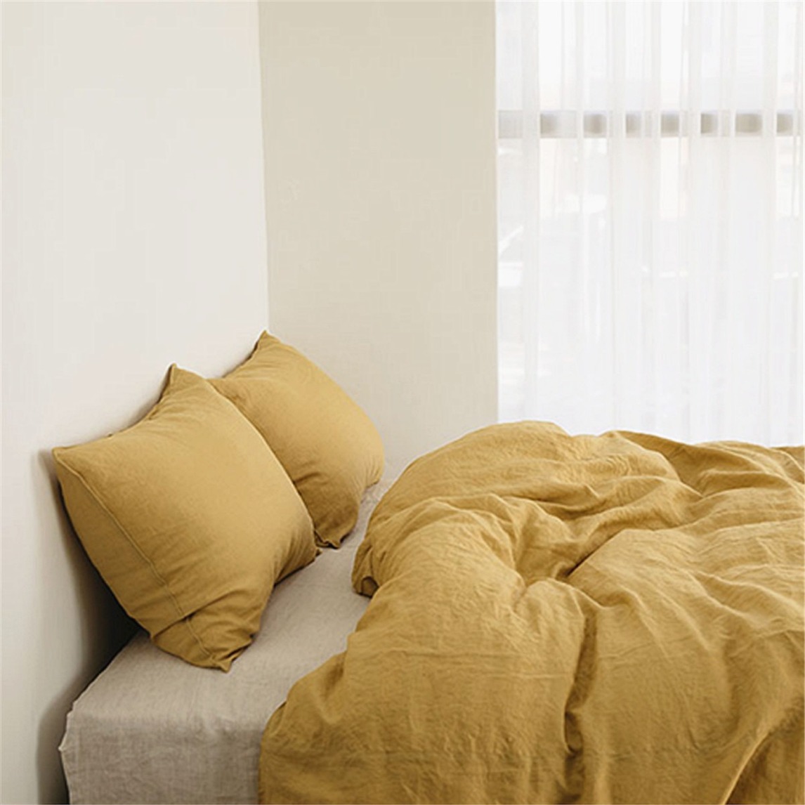 充满质朴美感的一款四件套,非常ins的姜黄色,结合水洗工艺带来的轻微褶皱面料,赋予做旧的质感,明媚而美好。