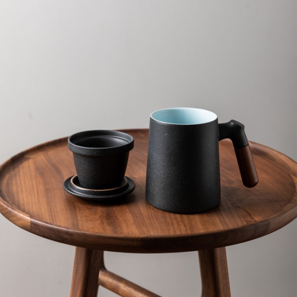 创意非洲酸枝实木把手,个性时尚防烫效果好,不锈钢过滤网可有效过滤茶渣,适合泡各类茶,泡茶喝水两用。高档的乌金釉让它显得更加沉稳厚重。