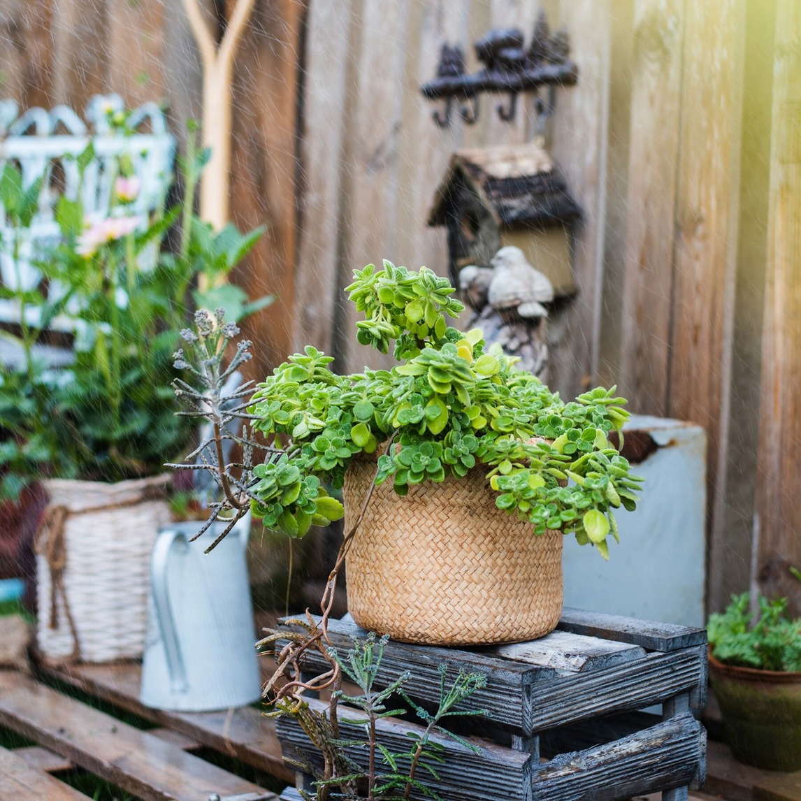 庭院里的花草搭配,将自然素朴的木制品融入其中,可以收纳和装饰于一体,再加上绿意渐浓的盆栽,简直棒呆了。