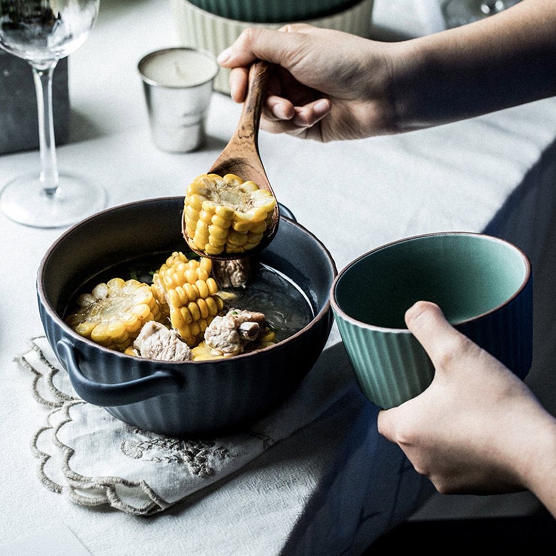 器物沉浸在柔和静谧的暗蓝色彩中,哑光釉面呈现丝绸般细腻质感,干净2利落的轻雾面光泽,复古绿、暗蓝、白杏三种配色呈现简约复古的悦目氛围,从此为主色调的餐桌景致,成为美味的点睛之笔。