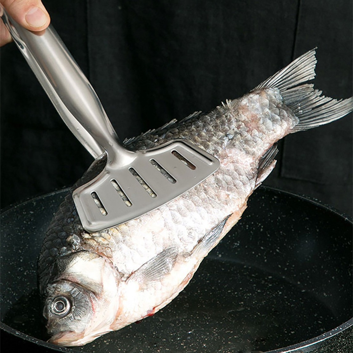 这样一个夹子,绝对是厨房必备的,加宽的设计,煎、夹、滤三功能合一,翻动食物的时候,鱼肉不会散落,煎鱼特别方便,还可以煎蛋煎牛排哦。