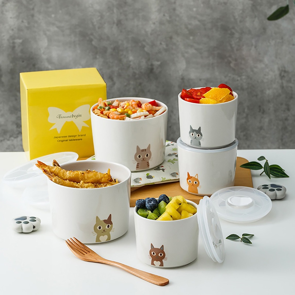 总是吃外卖,又贵又腻,对身体也不好,这个大眼猫咪陶瓷带饭碗,有盖子,可以微波炉加热,用它带饭去上班,从此告别外卖。