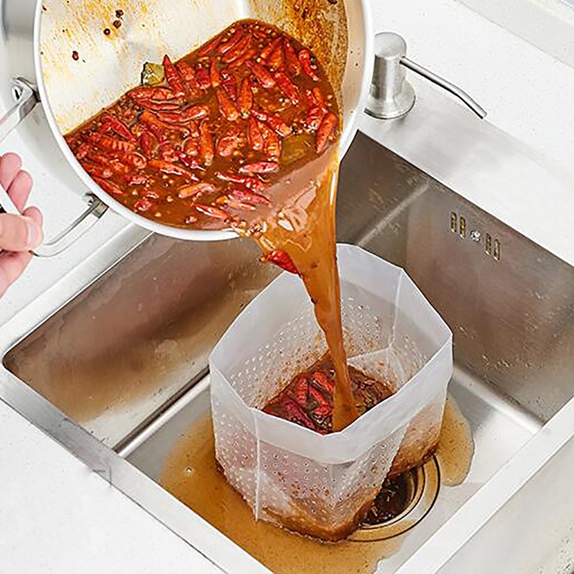 往水槽里面倒厨房垃圾,很容易堵塞水槽,弄得厨房脏兮兮的,这个自立的垃圾袋,放在水槽,直接倒厨房垃圾,可以过滤水分,留下垃圾,方便清洁。