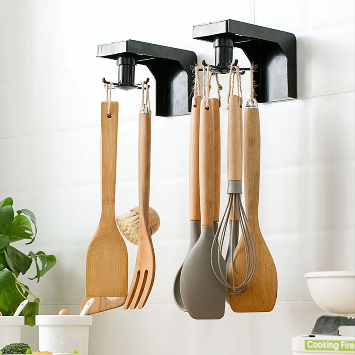 此款厨具收纳挂钩,加厚材质,挂钩可360度旋转,为厨房扩容,整齐收纳,厨具收纳整洁,焕然一新。头部可以伸缩,小身材,大容量。免打孔,防潮防尘,承重强。