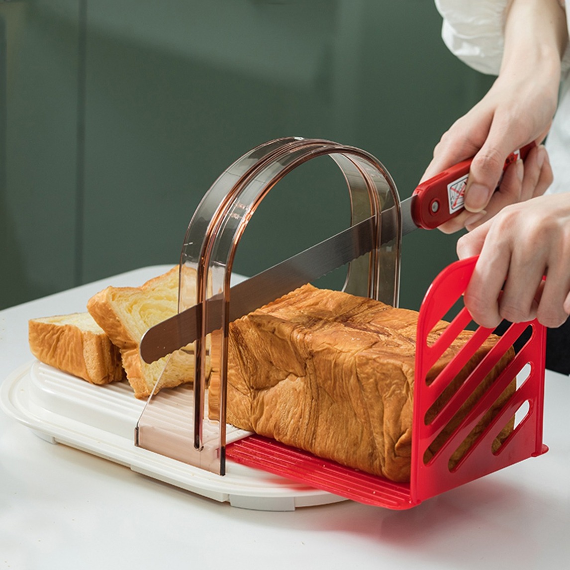 专为且面包片而设计的面包切片器,带有抽拉托盘和防尘盖,精准地切割,让吐司片整齐又精致,在家做吐司面包也可以很像样。
