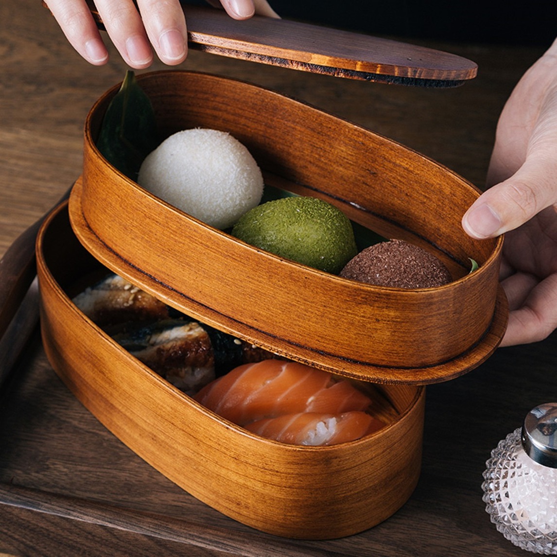 分格双层便当盒,从日剧中走出的美器,用餐伴随着淡淡的木香,搭配着简单的食物也赏心悦目,多谢自己的美味款待。