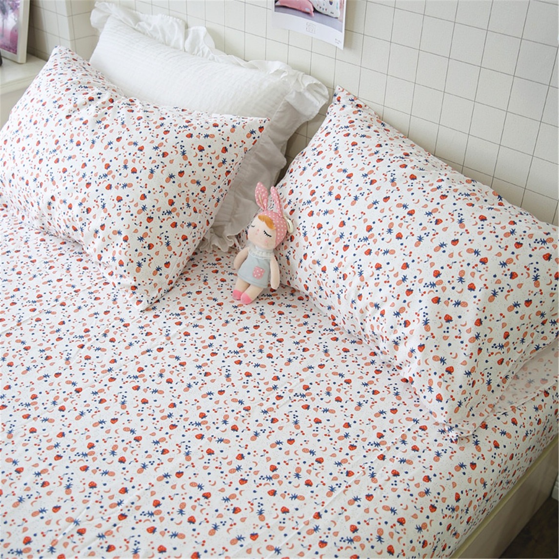 小碎花是每个少女房间的必备的装饰元素,例如这款碎花床上用品,红橙色的水果图案点缀,给人眼前一亮的感觉,日系少女风格满满的!