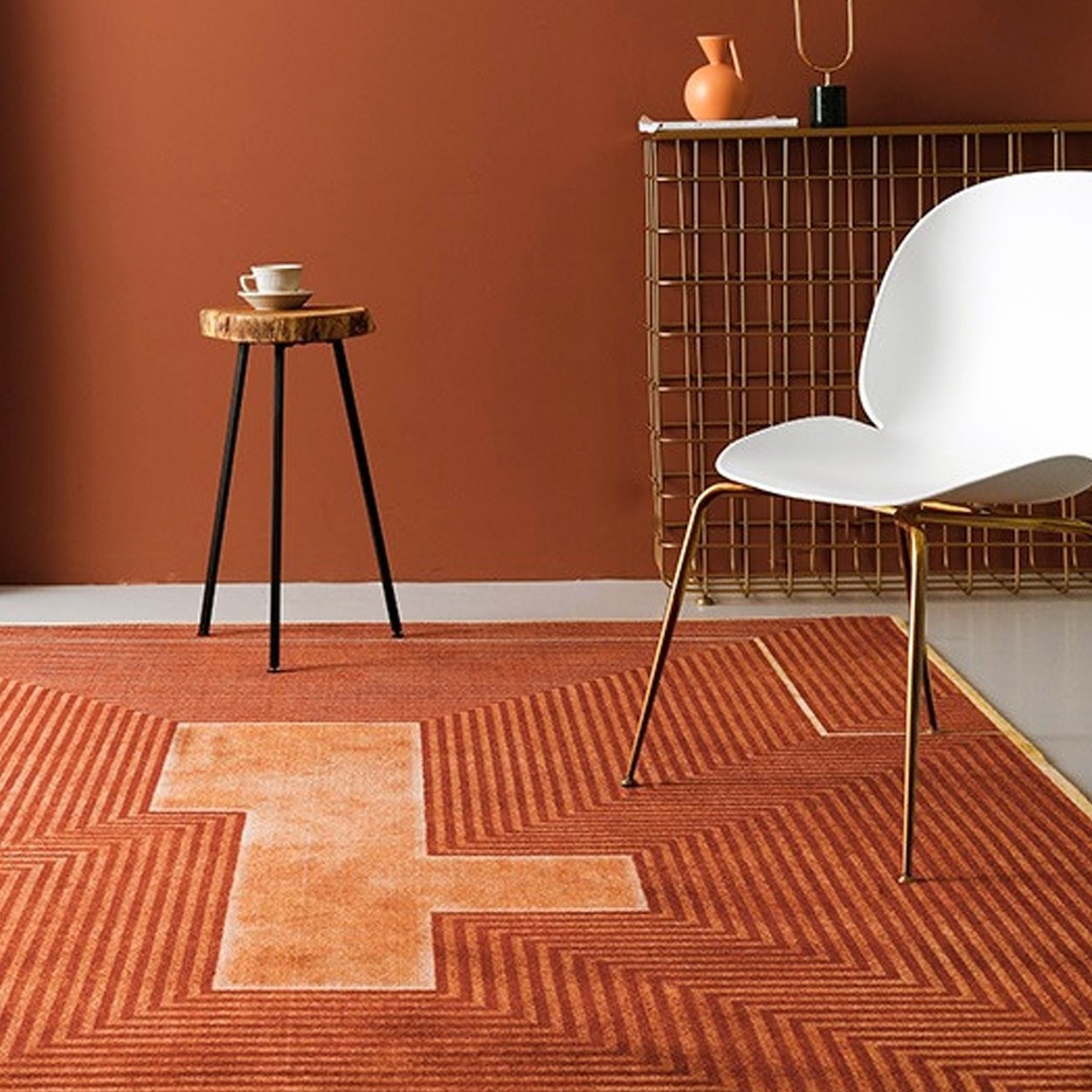 想要复古风而有设计感的客厅空间,大面积采用砖红色的元素来打造。为了避免审美疲劳,适当用一些清爽的白色和莫兰迪色系中和,这样的复古风十分浓郁。