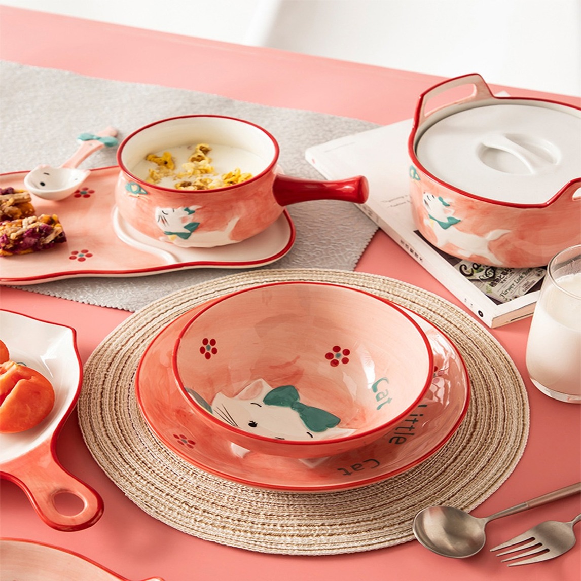 热爱美食与精致的餐具相配,热爱搭建生活的仪式感,在简约主义的餐具中,融入俏皮的图案,有趣的卡通手绘,搭配同款式的多样器具,让就餐不再将就。