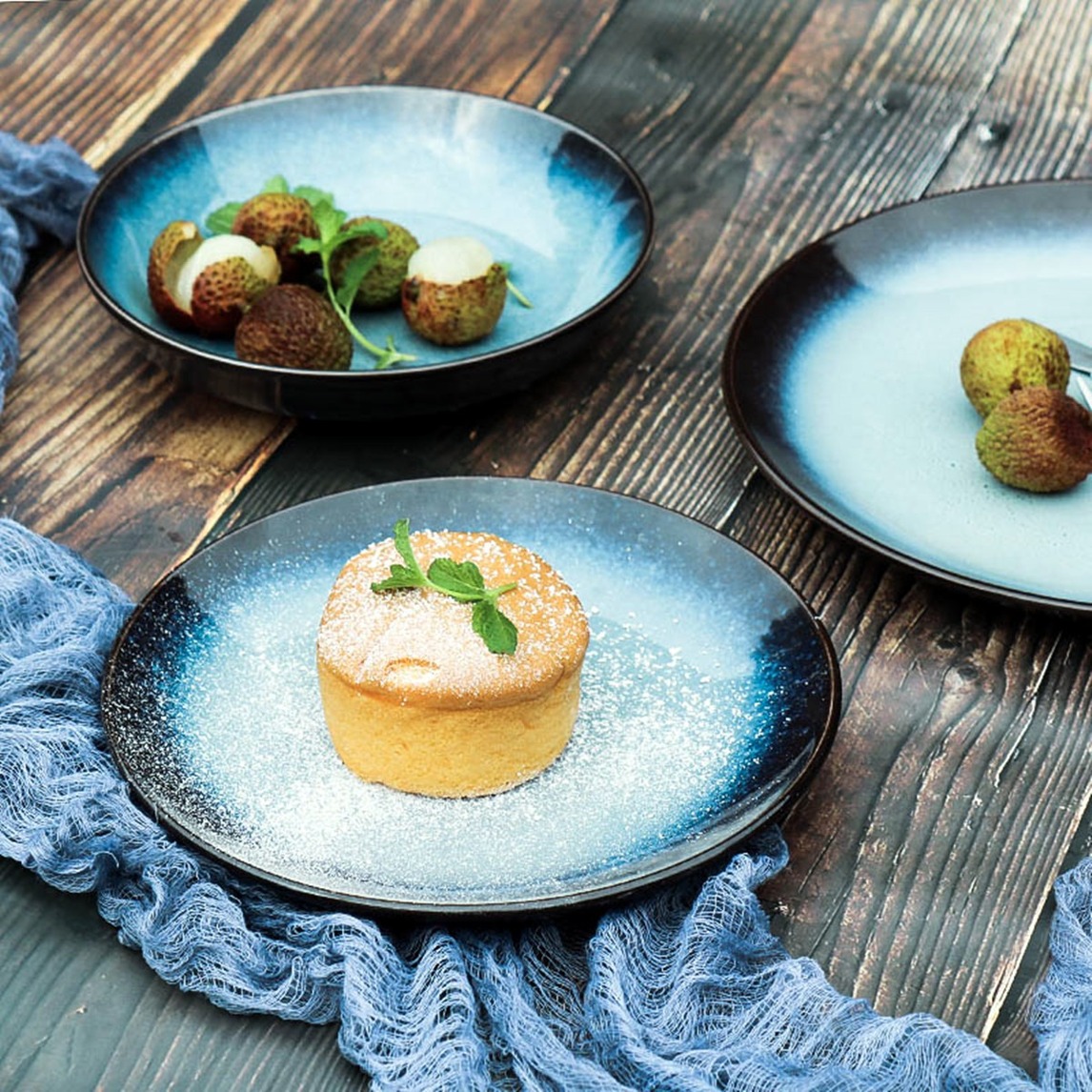 复古的盘子,本身就是一个艺术作品,深蓝的色调,带着渐变的感觉,犹如星空一般,璀璨而夺目,都有点舍不得用了。