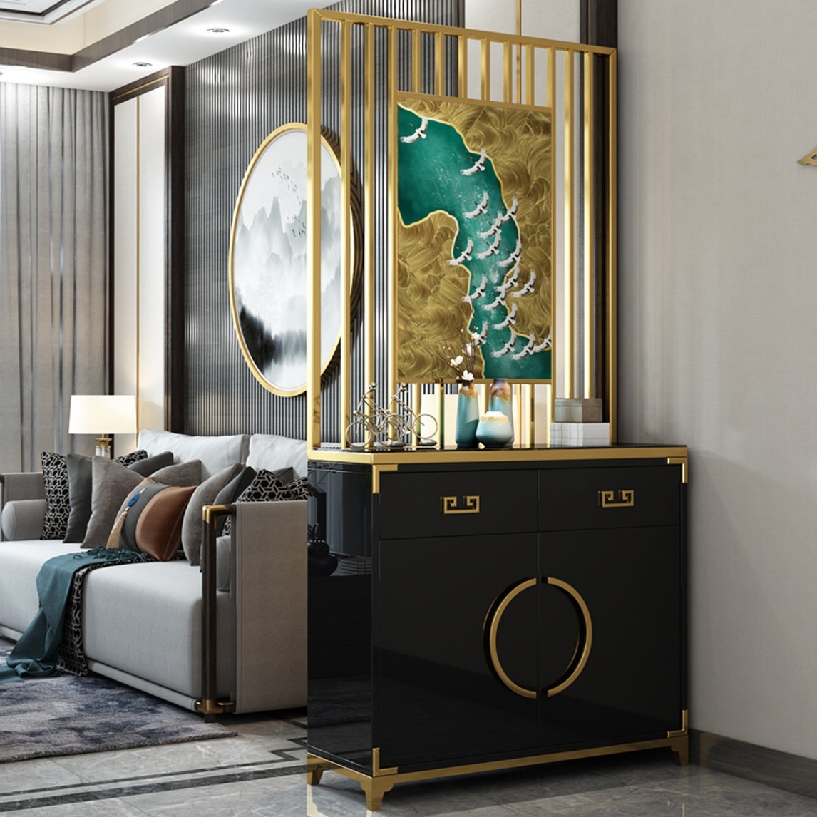 为了让客厅更具隐私性,也为了避免那些外带的煞气进入室内,都会在门口设置一个玄关,同时在玄关处摆放一个柜子不仅有效的将客厅与玄关隔断开来,还能让我们进出门换鞋和衣服更加方便。