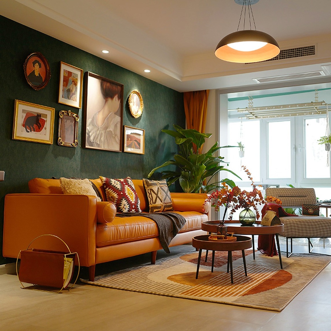 超级喜欢这款沙发的造型,简约大气上档次,经典复古不失雅致。亮棕色的明快亮丽色彩让小户型的压抑感瞬间消失,忙碌了一天回家,给人轻松愉快又舒适的氛围。