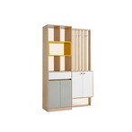 在门口处设立原木色玄关柜,简单的原木设计素雅清淡,这样既能保证空间整体的视觉美感,还可以解决收纳问题。而且和原木色地板搭配更加和谐,能为空间起到了一定柔和的过渡作用。