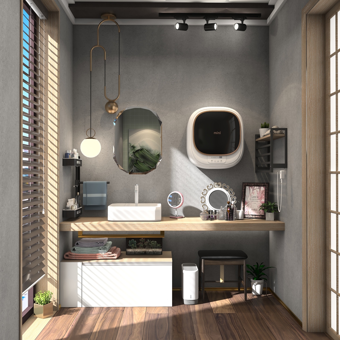 温暖清晰的大晴天总能让人心情愉快,壁挂洗衣机小巧方便随时给你轻松完成衣物清洁,有充足的自然光浴室镜给你自信的一天保证。空间利用更不浪费