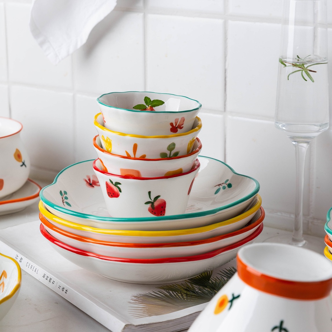 日式风格的餐具,往往颜值都非常高,经常有一些小而精致的花纹图案与小清新的配色相互点缀,放在厨房里,看起来格外美观。搭配上釉下彩的工艺,使得餐具的质感也格外出色。