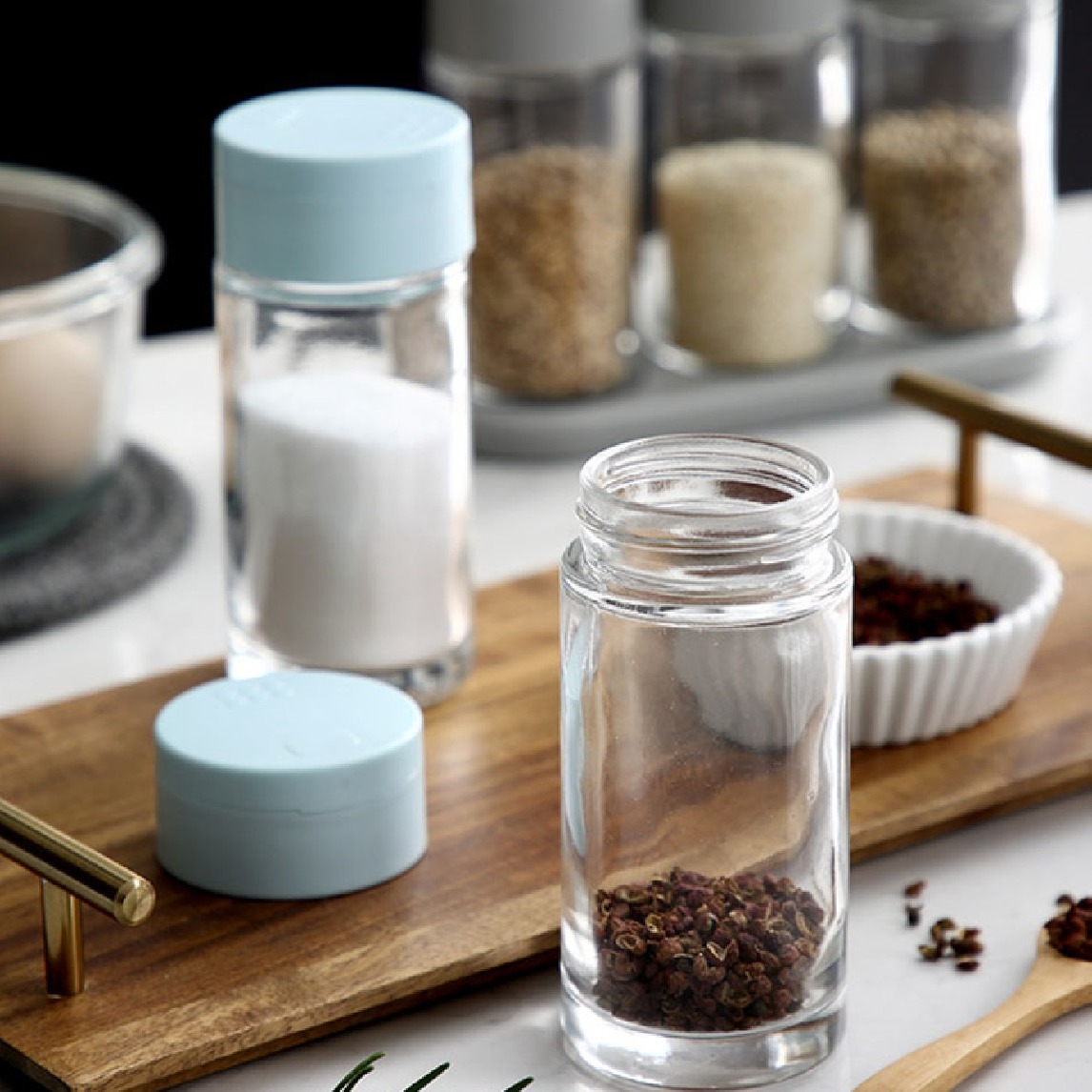 双向滑盖的调料瓶,无铅玻璃材质制作,通透的视觉,极易分辨食材,贴心两种开孔,能精准控制量,让味道更好。