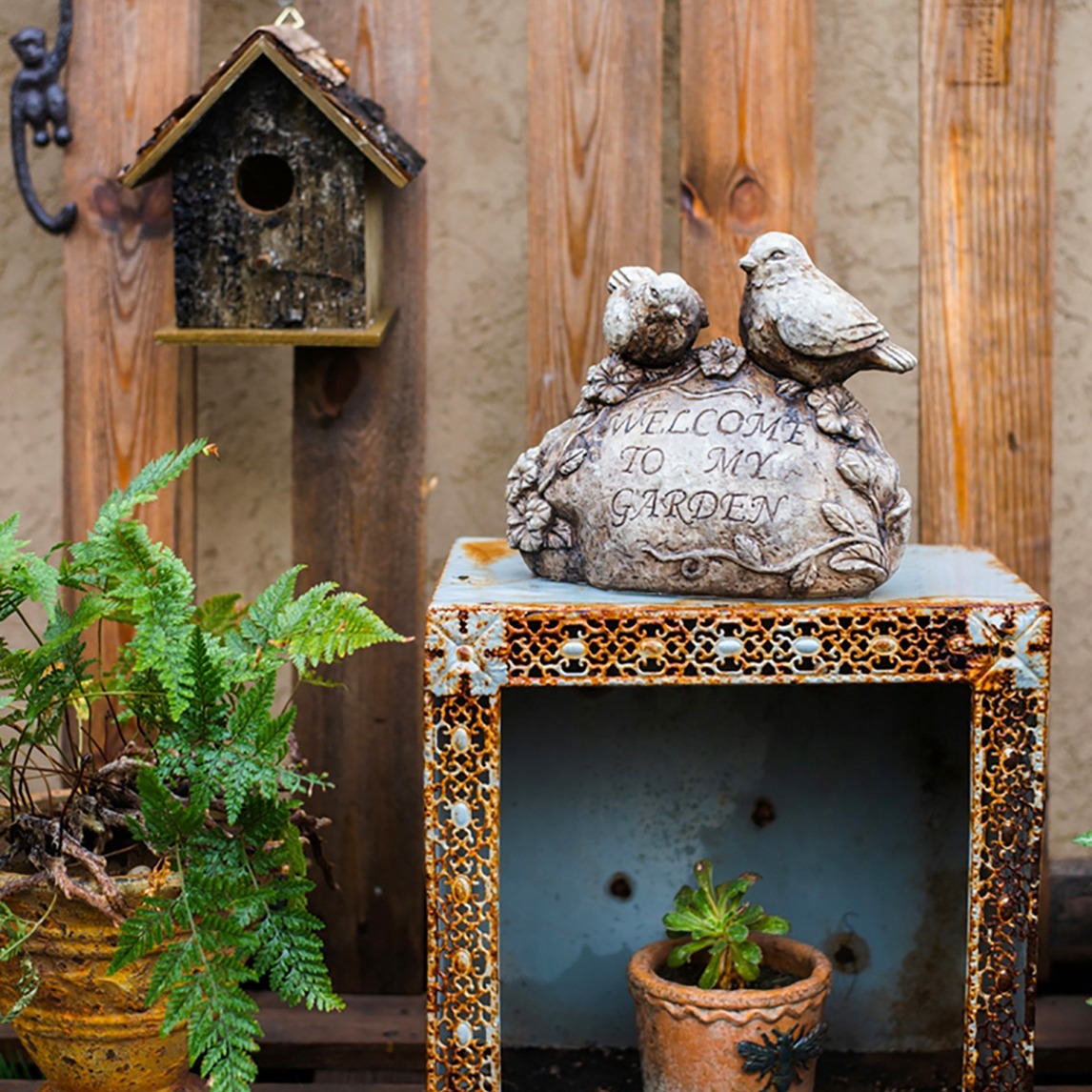 这是一个欢迎牌,可爱的小鸟点缀,水泥材质,充满园趣,小鸟的造型生动,栩栩如生,每家每户都可以摆放,打造别致一角。