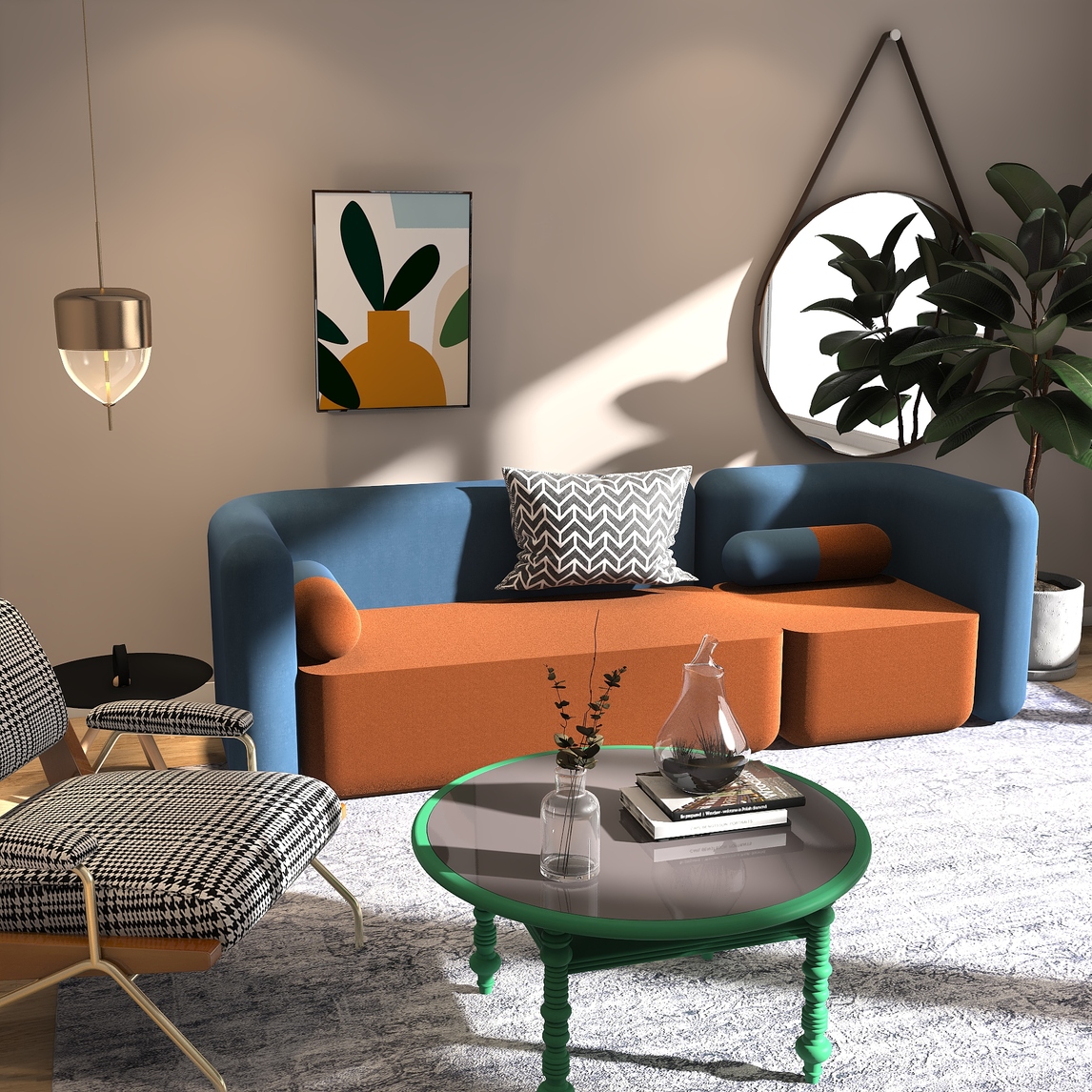 小户型的客厅设计偏向温馨一点更可人。家具的选择都偏向复古的调调。绿植可增加清新的味道,装饰镜则可以增加通透感。在装饰画的选择上也采用和沙发类似的颜色,迎合的更巧妙。