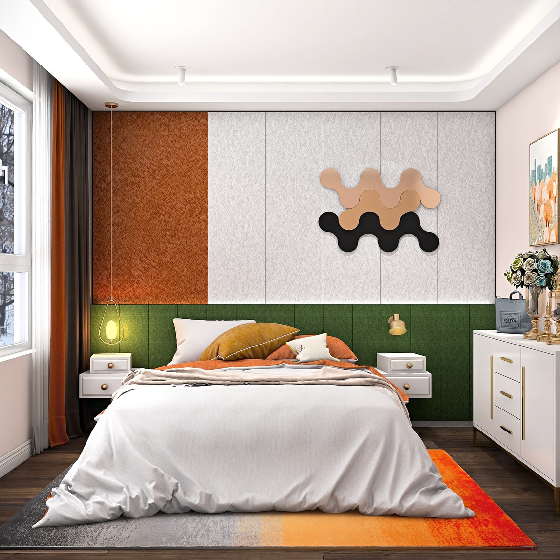 ins也可以与现代轻奢混搭----这样的主卧舒适赶紧又有层次感。色彩跳跃性拍打更显时尚前沿。有这样潮流卧室几十年都不会落伍。