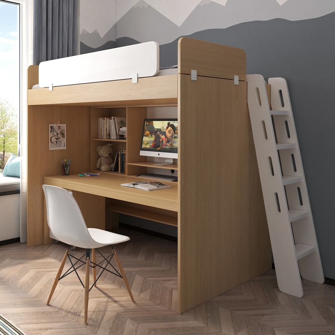 小面积儿童设计的时候,也可以利用墙面进行设计,可以定制床面与书桌结合又能缩小空间又实用在书桌可以放一些供孩子阅读的书籍,还有一些简单的小装饰品,这样不仅利用了空间,而且还隐形中培养了孩子的阅读习惯,这...展开