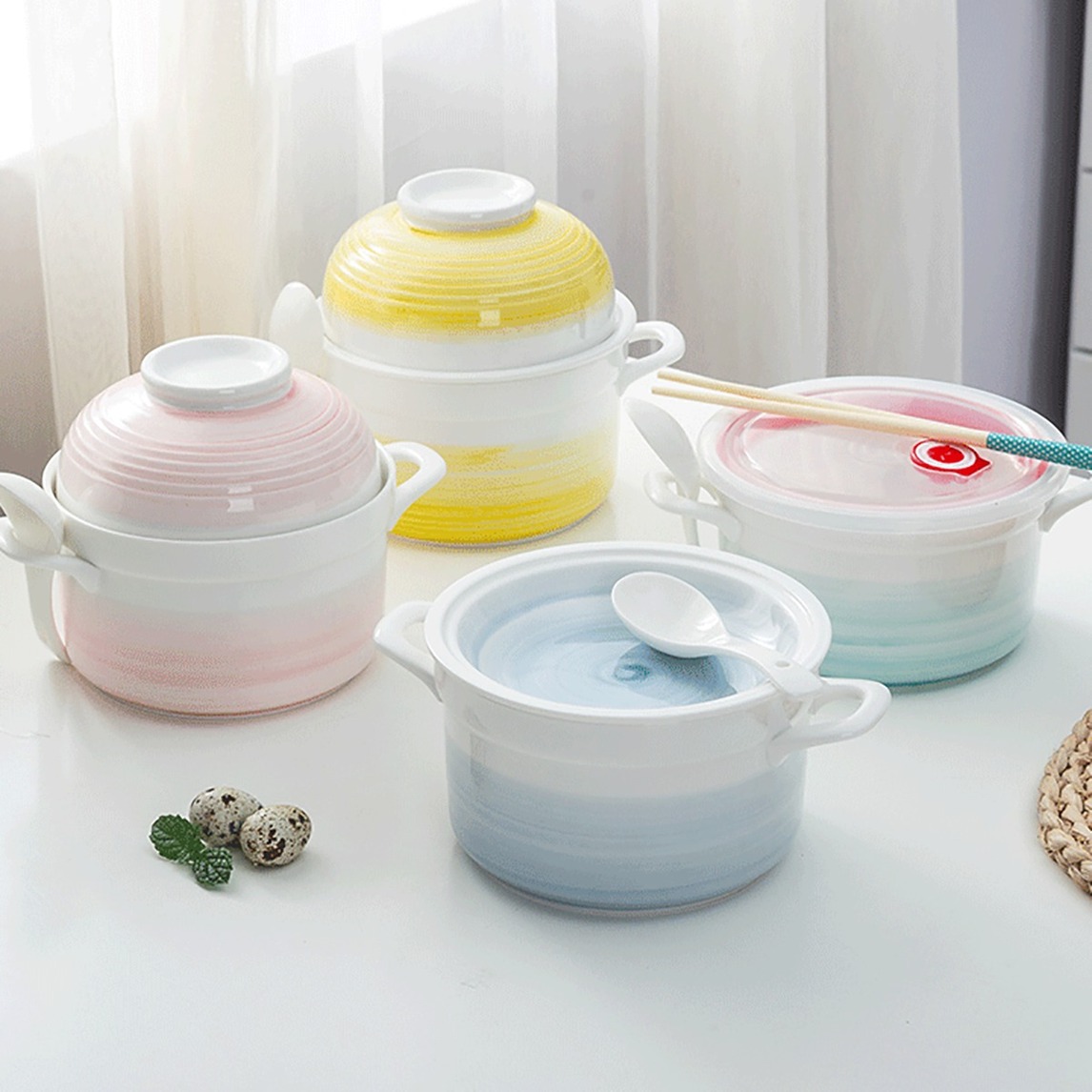 这个泡面碗,轻盈端拿,好用不烫手,双耳把手承重效果更好,拿起来很省力,防烫隔热,可以放置勺子,密封盖设计,保鲜不漏。